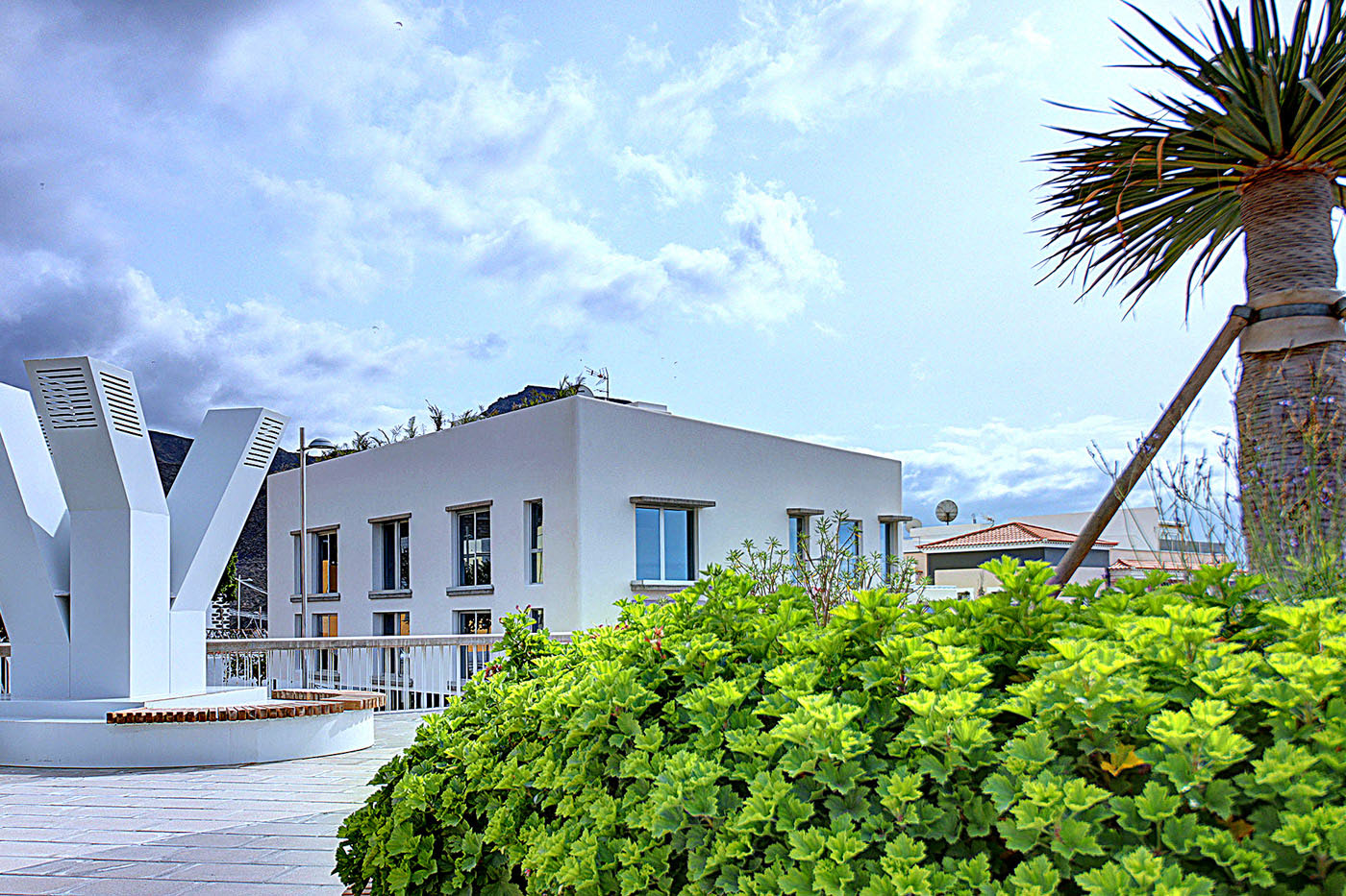 Proyectamos este edificio de consumo casi nulo segun CTE (A) de cuatro plantas para quince viviendas y locales, junto al barranco del Infierno, en el entorno urbano la iglesia de Santa Úrsula y el Conjunto Histórico de Casa Fuerte, siguiendo los parámetros de edificación de consumo nulo y sostenible.