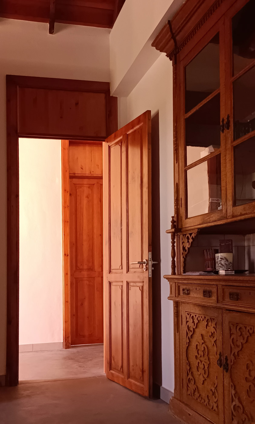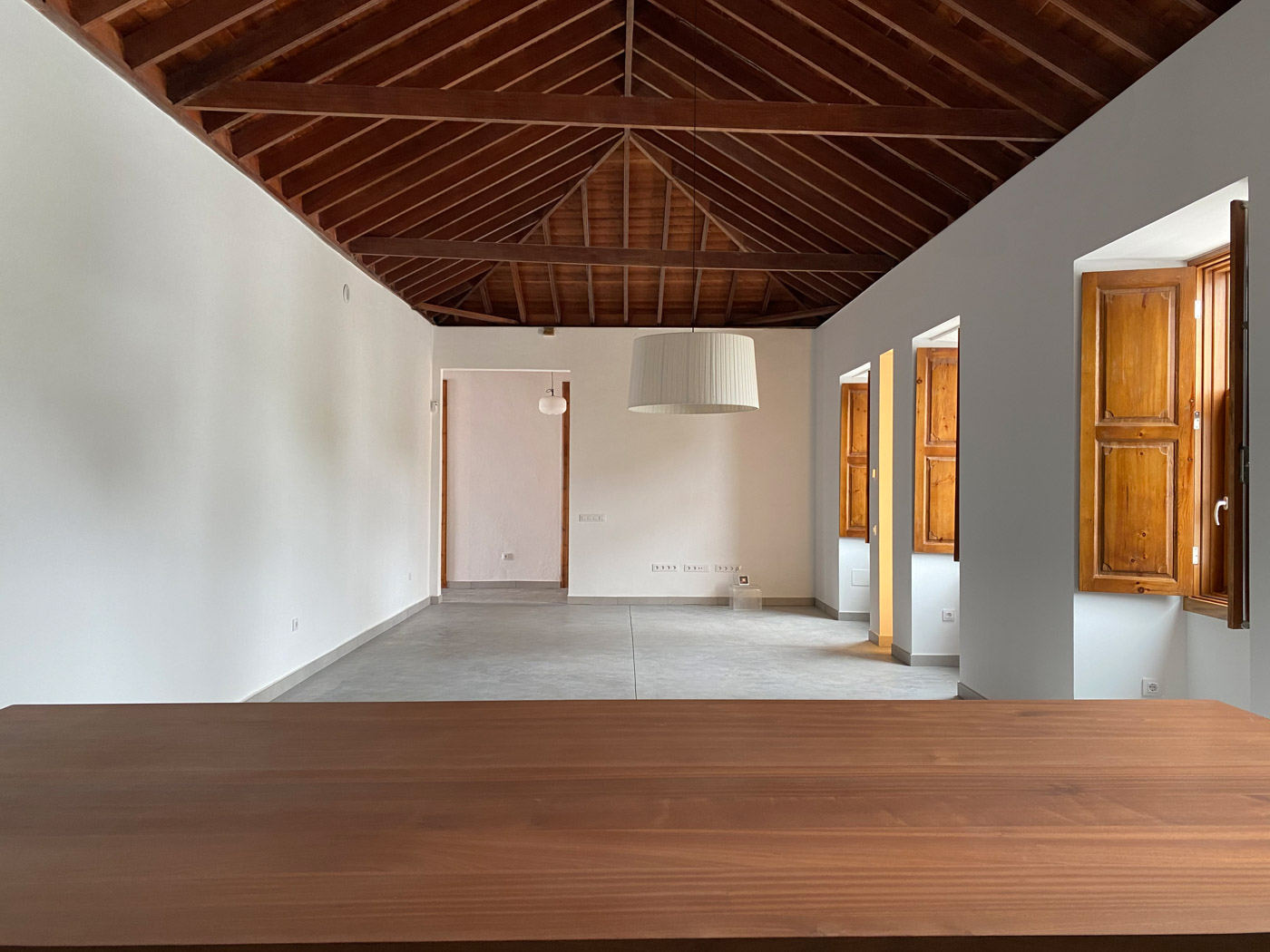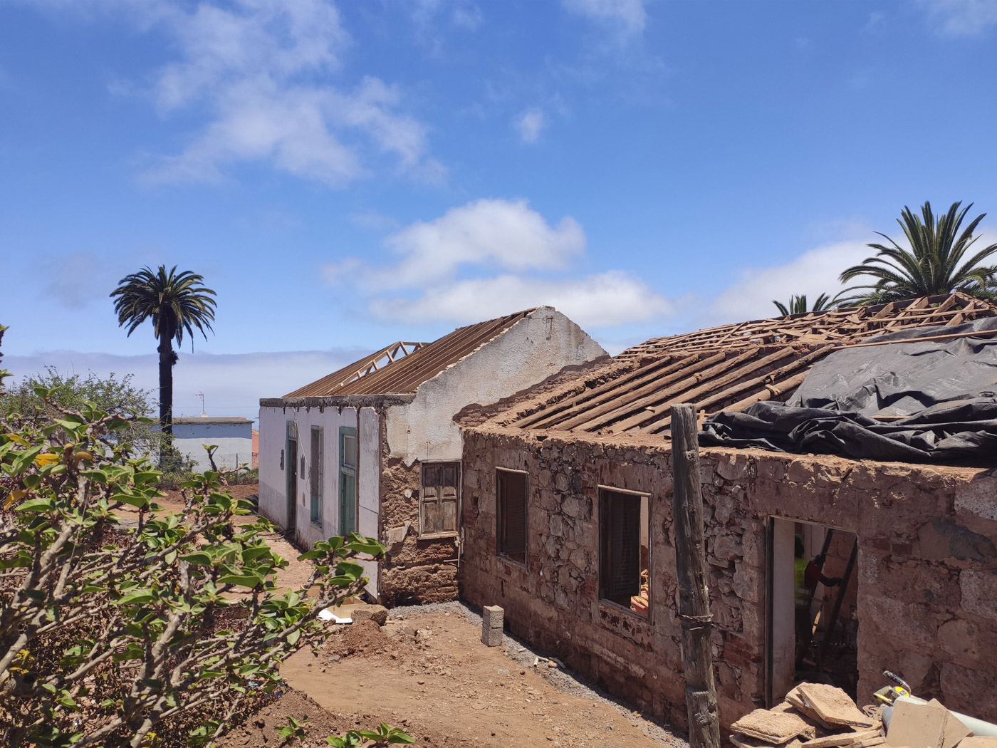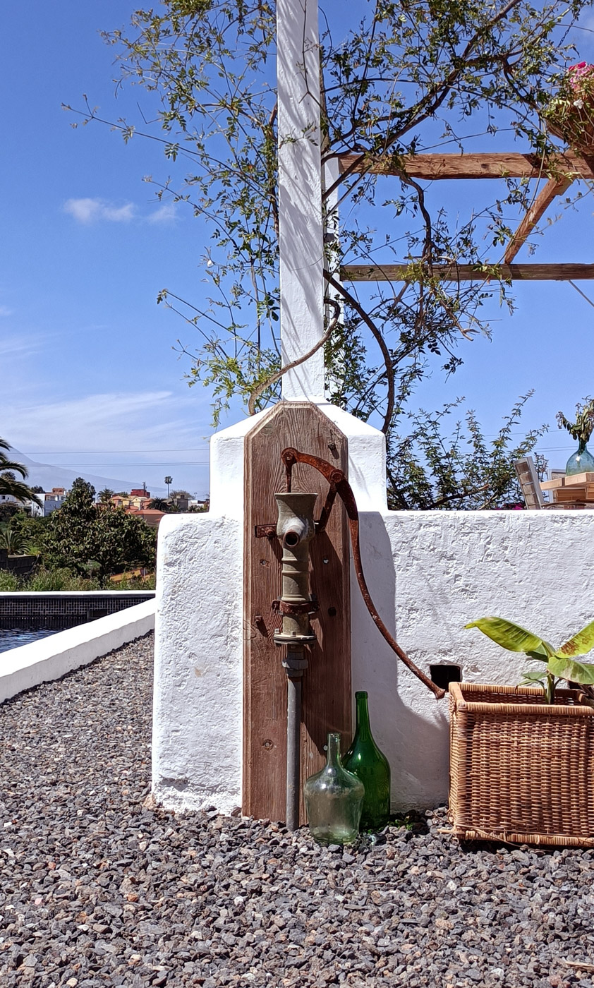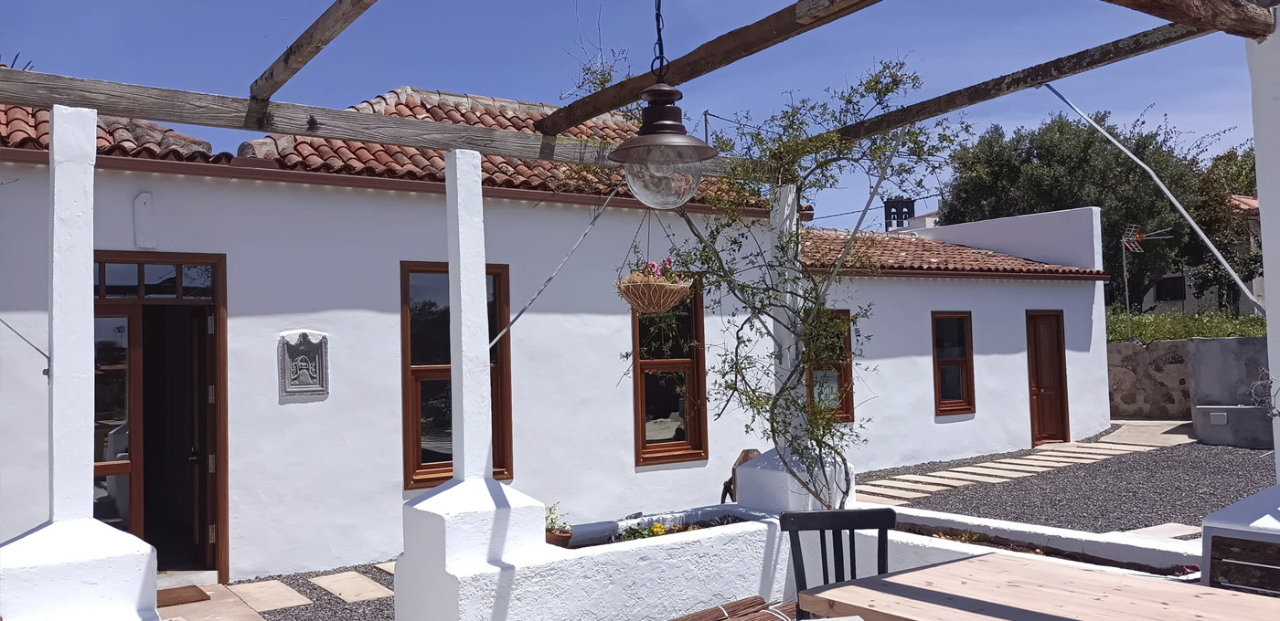 Por otro lado, la cubierta compuesta por tea de pino canario de tono rojizo fue reconstruida por un carpintero local de la isla con el sistema tradicional reutilizando elementos originales y materiales de cercanía.